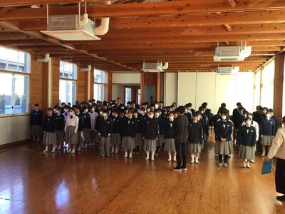 3年生は今日から本格的な卒業式練習をはじめました。合唱コンクールの曲に乗って入場する姿を見ると、胸が熱くなります。とてもよい雰囲気の練習ができたと思います。