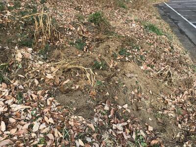今朝のことですが、学校に出勤すると駐車場に丸太が落ちていました。とても持てないぐらいの重さがありました。わかくさ山から転がってきたと考えられます。ふと、わかくさ山に目を転じると所々に落ち葉がなく地面が掘り返されていました。誰かが丸太をどかしながら掘り返したのでしょうか?人の仕業でしょうか?恐らくイノシシのしわざと思われます。わかくさ山のあちらこちらに掘り返された痕跡があります。食事を求めてこんなにも私たちの近くまで降りて来るんですね。