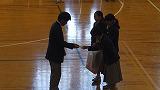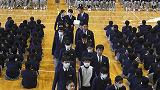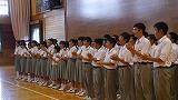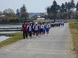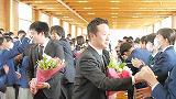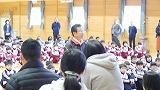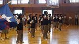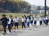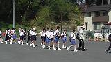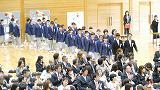 保護者と先生に見送られて校庭へ(BGMは卒業合唱曲の予定だった3年生が歌う「正解」)