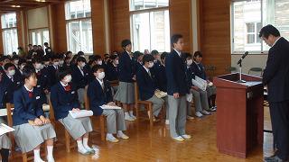 1月31日(木) 全校集会で各部の部長任命式と表彰が新世代2Fで行われました。