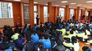 2月12日(水)5校時終了後,2階新世代で全校集会が開かれました。表彰伝達と各委員会からの報告がありました。