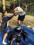 現在まで台風の影響で使用ができないテニスコートに代わって,体育館南に新しいテニスコートを整備中です。コート作成に携わった方々に感謝です。もう少しで完成です。