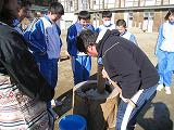 本校では,2学期終業式の日にクラスごとにもちをついて楽しみます。