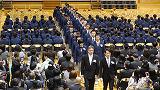 後期の生徒会役員任命式とジャージ登下校の確認が行われました。
