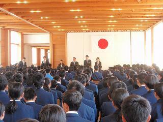 1年3組は,1月16日(火)~18日(木)の3日間を臨時休業とする。その他の1年1組・2組は通常授業。但し,本日より1年生の部活動は休止とする。