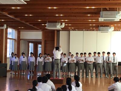 文化祭に向けて、20日(月)から、全学年で合唱練習が始まりました。歌声が響く風景はとても心地がよいものです。最優秀賞目指して、クラス一丸となって練習しています。当日をお楽しみに!