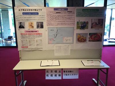 中には、立ち止まって写真や資料を見たり、リーフレットを読んだりする生徒や、北方領土返還運動に署名する生徒もいます。本校の生徒たちの意識の高さがうかがえます。ホームページをご覧のみなさまも、学校にお立ち寄りの際はぜひ掲示物や写真を見学いただけるとうれしいです。