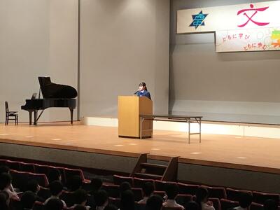 ・自分たち1年生は初めての中学校での文化祭・合唱コンクールなので、先輩たちの行動を見て自ら行動し、クラスのみんなで1年生全員の手本となるような姿勢で合唱コンクールも文化祭も一生懸命がんばりたい。また、合唱コンクールは、今までみんなで協力し、目標を達成するための練習をしてきたから、この合唱コンクールは緊張するかもしれないけれど、自分の持っている最大限の力を発揮できるように頑張りたいです。