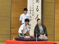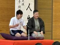 その後の落語体験では三名の生徒が参加し、小話を行いました。それぞれが自分の持ち味を発揮して小話を披露してくださいました。三名の生徒諸君、ありがとうございました。