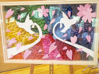 壮行会の前に,生徒会で広島平和記念式典に持って行く千羽鶴パネルを披露しました。