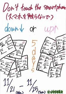 2学期期末のテスト休み期間中にノーメディア・ノースマホ5daysを実施しています。学習に集中できるように,できるだけ関係のないメールは控えるようみんなで協力し合っていきましょう。関係のある小学校にも協力を呼びかけて,兄弟姉妹にも呼び掛けています。