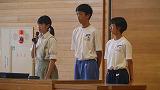 式の後,生徒会よりペットボトルキャップ回収の表彰と平和記念式典参加者3名の挨拶がありました。