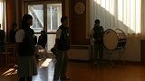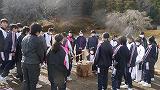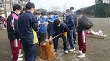 その後,校庭で恒例のもちつき大会が開かれました。ここ数年晴天に恵まれています。