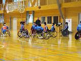 1月28日(火)3校時か4校時にかけて,体育館で栃木レイカーズの方々と一緒に車いすバスケを体験しました。給食も一緒に食べ,楽しく過ごすことができました。