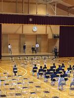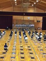 感染症防止のため、体育館に入るのは、1学年に限定し、ローテーションを組みました。他の学年は、教室で生徒会主催のゲームや各クラスで作成した映像を披露する「映像フェス」を視聴しました。各クラスでは、絵コンテを作成し、撮影、編集とタブレットを使って「繋」をテーマに5分の映像を作成しました。アイディア満載の作品ばかりでした。