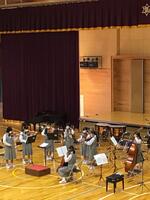 続いての登場は、管弦楽部でした。定期演奏会が開催できなかった鬱憤を晴らすかのような、素敵な演奏でした。サポートメンバーとして、久保先生や宇賀神先生、フェルナンド先生、教育実習生も参加しました。生演奏が体育館に響き、生徒や保護者の方々も聴き入っていました。