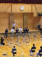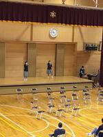 体育館での発表では、合唱部が、県学校音楽祭でも披露した「信じる」を歌いました。そこでサプライズ!何と、教頭先生が指揮台に登場し、指揮をしてくださいました。生徒たちの素敵なハーモニーが、体育館に響きました。