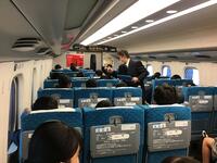 新幹線のぞみ号に乗りました。天気は薄曇り。窓からの景色を見ながらおやつタイムです。富士山が見えた時には歓声が上がりました。
