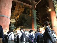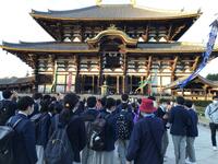 今日は奈良県です。どのクラスも東大寺を見学しました。天気は晴れ。紅葉が夕日に映えていました。