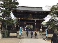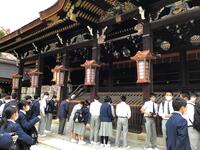 朝の天気は雨。クラス別研修に出発しました。どのクラスも最初は北野天満宮でした。雨が上がり、この後は、クラス別に行動します。