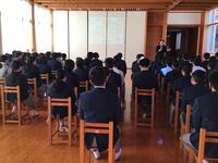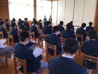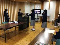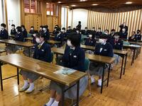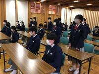 12月24日(金)終業式が行われました。今回も、コロナウイルス感染予防の観点から、zoom による式となりました。校長先生からは、マザーテレサの言葉が紹介されました。「思考に気をつけなさい それはいつか言葉になるから。言葉に気をつけなさい それはいつか行動になるから。 行動に気をつけなさい それはいつか習慣になるから。習慣に気をつけなさい それはいつか運命になるから。」その後、各学年の生徒たちへ、1年生には、「よい先輩になろう。」2年生には、「よいと思ったことは行動に移そう。」3年生には、「進学先で何を学ぶかが大切だ。」というメッセージが送られました。始業式には元気な笑顔が見られることを期待しています。終業式に先立って、受賞伝達も行われました。