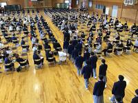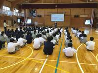 4月12日(火)生徒会主催の新入生歓迎会が行われました。通常ならば全学年参加で行われるのですが、コロナウイルス感染予防として1年生のみの参加でした。まず始めに、生徒会から学校生活の仕方についてのアドバイスがありました。興味深そうに話を聞いていました。そしてその後、部活動紹介が行われました。各部工夫を凝らしたパフォーマンスで、多くの生徒の入部を呼びかけていました。多くの生徒の部活動入部を期待しています。