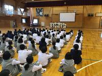 4月8日(金)新任式、始業式が行われました。この日は、朝昇降口で新しいクラスの発表がありました。名簿を指差しながら、大きな歓声が上がりました。自分のクラスを確認して、新しい友達と教室に入る姿が見られました。新任式では、12人の新しい先生方をお迎えして、令和4年度がスタートしました。始業式では、校長先生から、「教育目標を意識して生活しよう」と話がありました。「情熱」やる気をもって、「挑戦」選択する時は、少し難しいと思う方に進もう、「思いやり」あいさつを積極的に交わそうと具体的な話もいただきました。この「情熱」「挑戦」「思いやり」を実現できるように頑張って生活していきましょう。