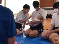 3年生の家庭科の授業で赤ちゃん交流体験が行われました。赤ちゃん交流体験は、NPO法人レインボー様の呼びかけで行われるものであり、赤ちゃんとふれあうことで命の尊さや心身の発達を学び、将来の子育てに対する気持ちを育てることを目的としています。