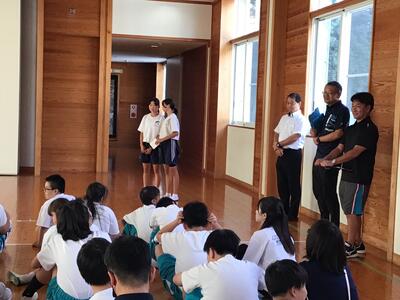 9月12日(金)に、富屋特別支援学校鹿沼分校との交流学習を行いました。事前学習を受けて、一緒に活動できることを考えて実施しました。学級委員長が司会進行を務め、生徒主体で会を盛り上げていました。