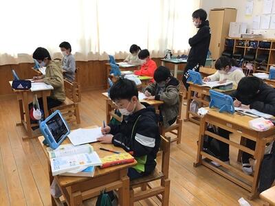 1月19日(木)、小中交流学習で6年生が粟野中に行きました。