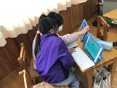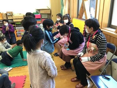 ジョリーフォニックスで、動作を取り入れた発音を行なっていました。