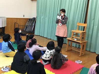 演目は「あらしのよるに」でヤギのメイ とオオカミのガブのお話です。