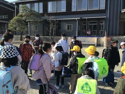 うっすらと雪が積もっていましたが、児童は元気に登校しました。