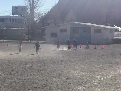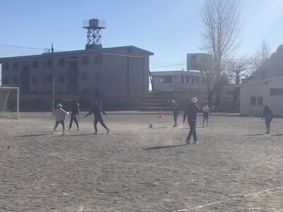 男女に分かれて、サッカーのミニゲームを行いました。大きな声が聞こえてきます。