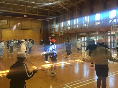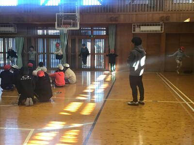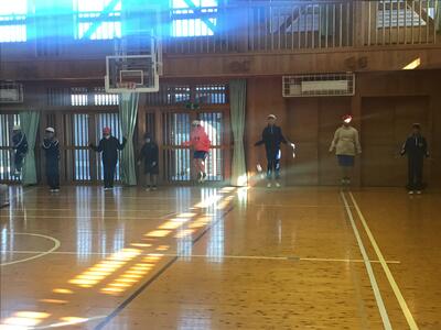 はじめは持久跳びです。下学年は2分間に挑戦です。