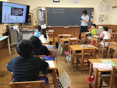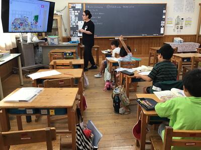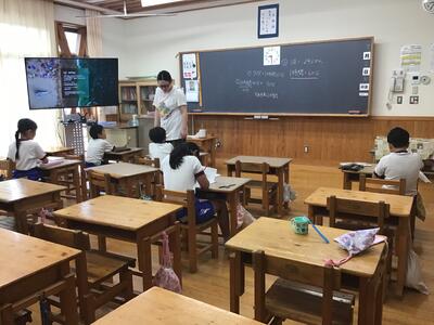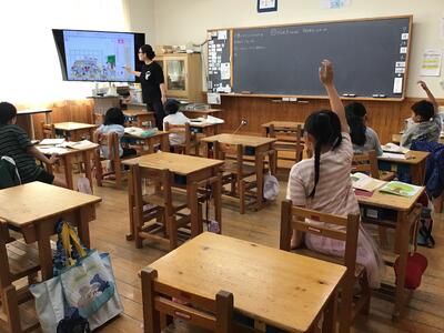 救いたい動物の暮らす場所をたずね合う活動を通して、英語を学習する時間でした。
