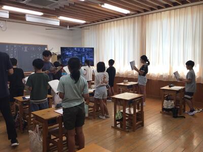 2つのグループに分かれて、相手にわかるように工夫をして道案内をしていました。