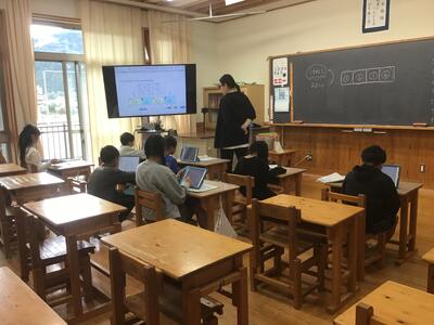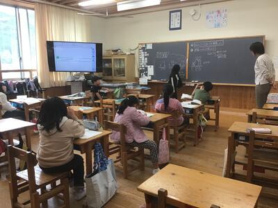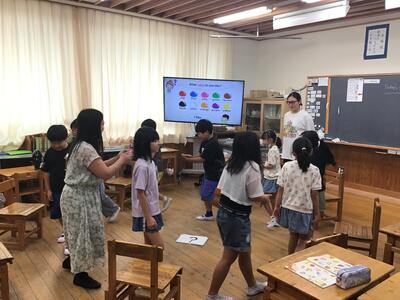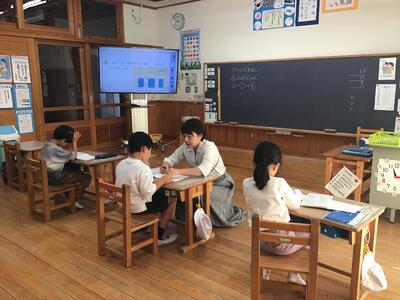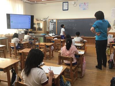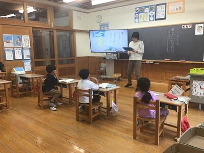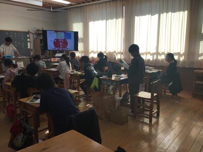 ゲームをもとにした外国語の活動で、とても盛り上がっていました。