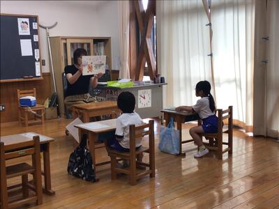 ことばに関するゲームを通して、たくさんのことばに触れていました。また、最後は紙芝居を楽しんでいました。
