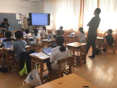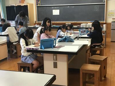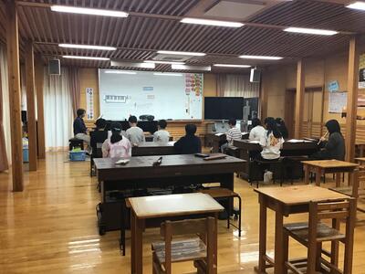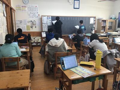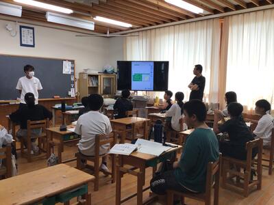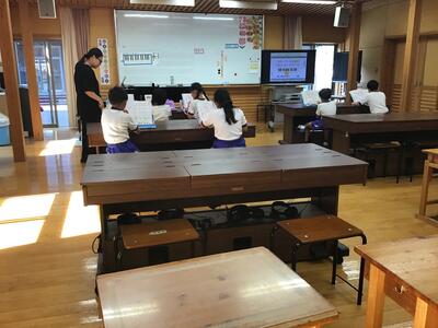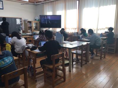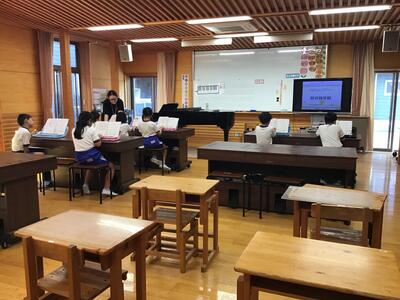 タブレットで各自が旋律をつくり、順番に発表をしていました。鑑賞後は感想を述べていました。