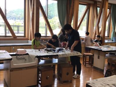 次は、紙漉き体験のようすです。講師の方に教えていただきながら挑戦しました。
