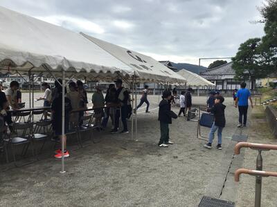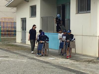 上級生が低学年の子を着順通りに記録係のところに連れて行ってあげているところです。