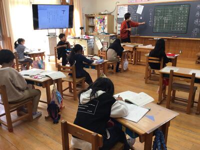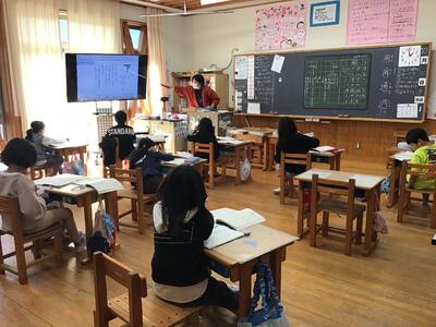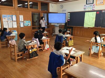 次は2年生、算数の授業です。かけ算を使う問題でした。みんなしっかり式を立てられたようです。