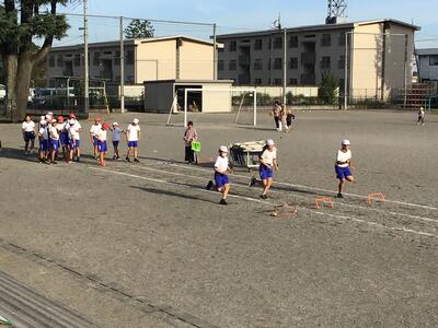 準備運動のあとは、いろいろな動きでコースを走ります。