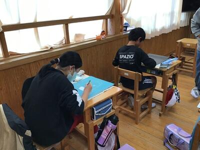 漢字の学習をしていました。頑張って姿勢よく書いていました。
