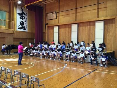 日に日に上達しています。児童の歌声が体育館いっぱいに広がりました。