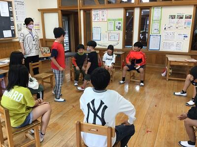 児童たちから「校長先生も一緒にやろう」と誘われ、一緒に行いました。