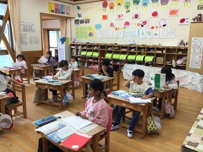 MIMの読みカードで正しい読み方ができるか、行っていました。