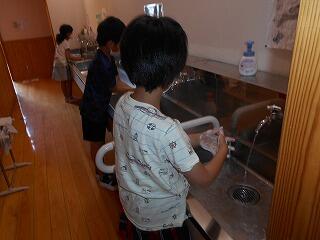 指の間、つめの先が汚れが落ちにくいようでしたので、手洗いの歌に合わせて丁寧に洗いました。