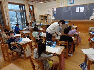 ICT支援員の永山先生にお世話になり6月23日の研究授業に向けて2年生はかなりがんばっています。